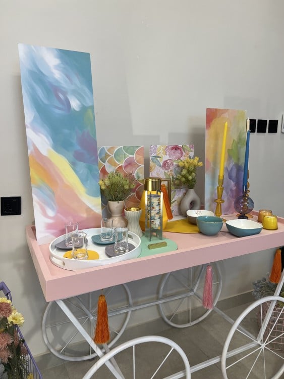 عربة تقديمات العيد بالوان زاهية مناسبة للعيد